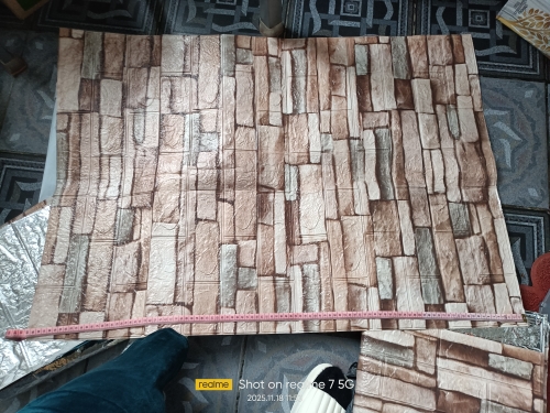 2. Peel off the adhesive film and stick the wallpaper on the surface.