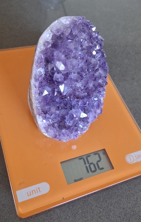 The Amethyst is magnificent, I was happy with the specimen they sent me. At first, I had doubts about buying this type of thing without seeing it before, but honestly, everything is great. The crystal tips are noticeable, neither too big nor too small, and the color of the Amethyst shows that it is of quality. Regarding the weight, it weighed slightly more than indicated, so in that aspect too, very happy, very happy with my purchase. Recommended seller if you want to buy one and are indecisive. PERFECT